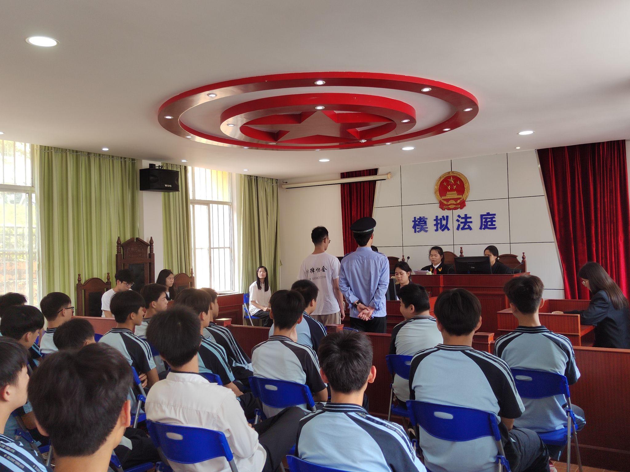 活动的第二形式模拟法庭次模拟法庭审判案件由2023年重庆市一名未成年人故意伤害罪改编而来。模拟法庭内的所有的角色均由普法团队学生志愿者扮演,志愿者们将现实案例自身专业的知识通过模拟法庭活灵活现呈现出来,以寓教于乐的情景互动教育模式进行普法,达到增强表达能力、实务操作能力的效果,也让青少年更加直观地了解司法审判的活动流程和内容,增加其对法庭的认知。极具引导性、趣味性互动性的活动形式使同学们在潜移默化中接受法治教育,树立法治信仰,从而更深层达到“审理一案,教育一片”的深刻教育意义。活动的最后,邕宁区人民法院粟少清法官对模拟法庭进行总结和点评,对本次活动的意义给予了肯定,并要求学生们顺应时代潮流,以更高的标准严格要求自己,规范自身行为,同时,在受到不法侵害时要勇于寻求法律的保护