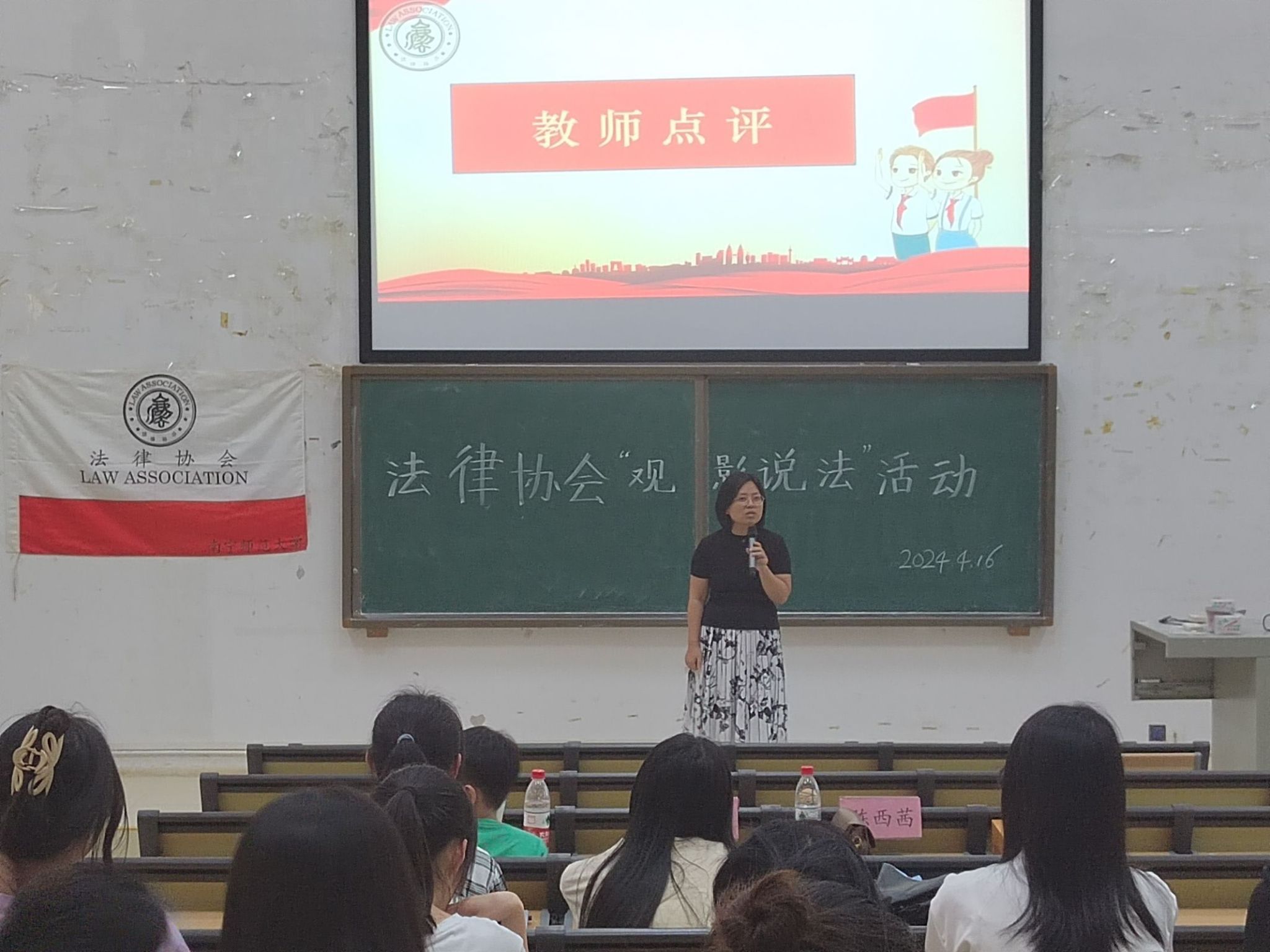 为了激发同学们学习法律知识的兴趣,培养同学们的法治观念,营造浓厚的校园法治氛围,推进校园法治精神文明建设,我校法律协会于2024年4月16日下午在五合校区五综308教室举办了以“营造法治氛围,建设法治校园”为主题的“观影说法”活动,活动邀请法律系专任教师秦晓辉老师到场指导。