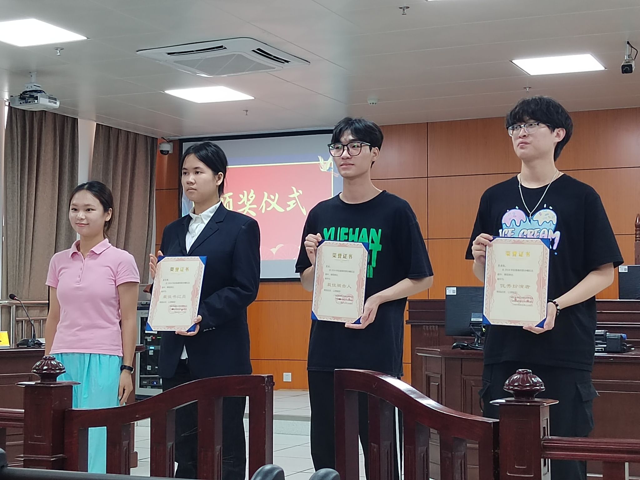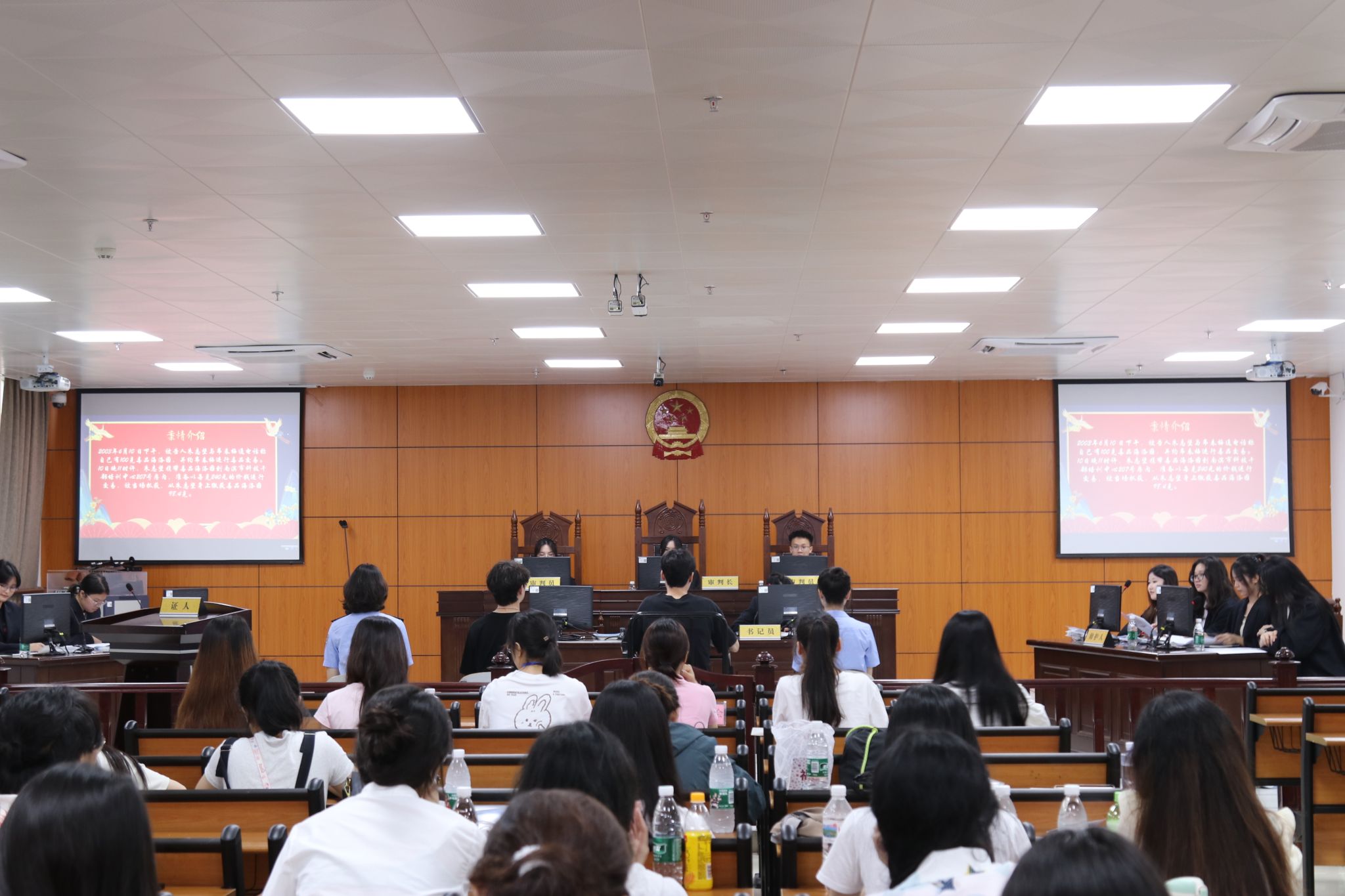为深入开展大学生法治教育,丰富法律文化生活,营造校园法治氛围,让高校学生更深刻地了解法律知识及法庭审理程序,增强运用法律解决问题的能力,2024年5月25日上午,由广西警察学院法学实践者会主办的“高校联合模拟法庭——广西警察学院站”活动在广西警察学院五合校区2号实训楼201教室顺利举行。我校法律协会、广西财经学院法律协会、广西警察学院法律协会、广西大学法学社及广西民族大学相思湖法律协会参与此次南宁市六大高校联合模拟法庭活动。