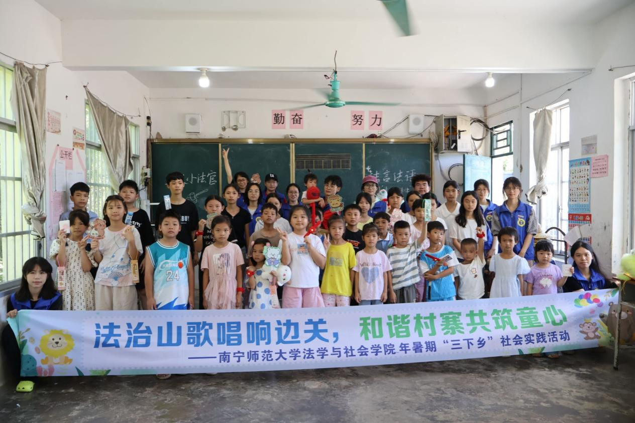 7月16日2025暑期"三下乡"实践团在宁明县那么村开展防溺水安全教育与普法宣传活动,覆盖当地留守儿童及村民40余人。本次活动邀请那么村驻村第一书记马万里、那么小学校长黄家宏,这是该学院连续第3年在乡村地区开展乡村振兴基层普法服务。