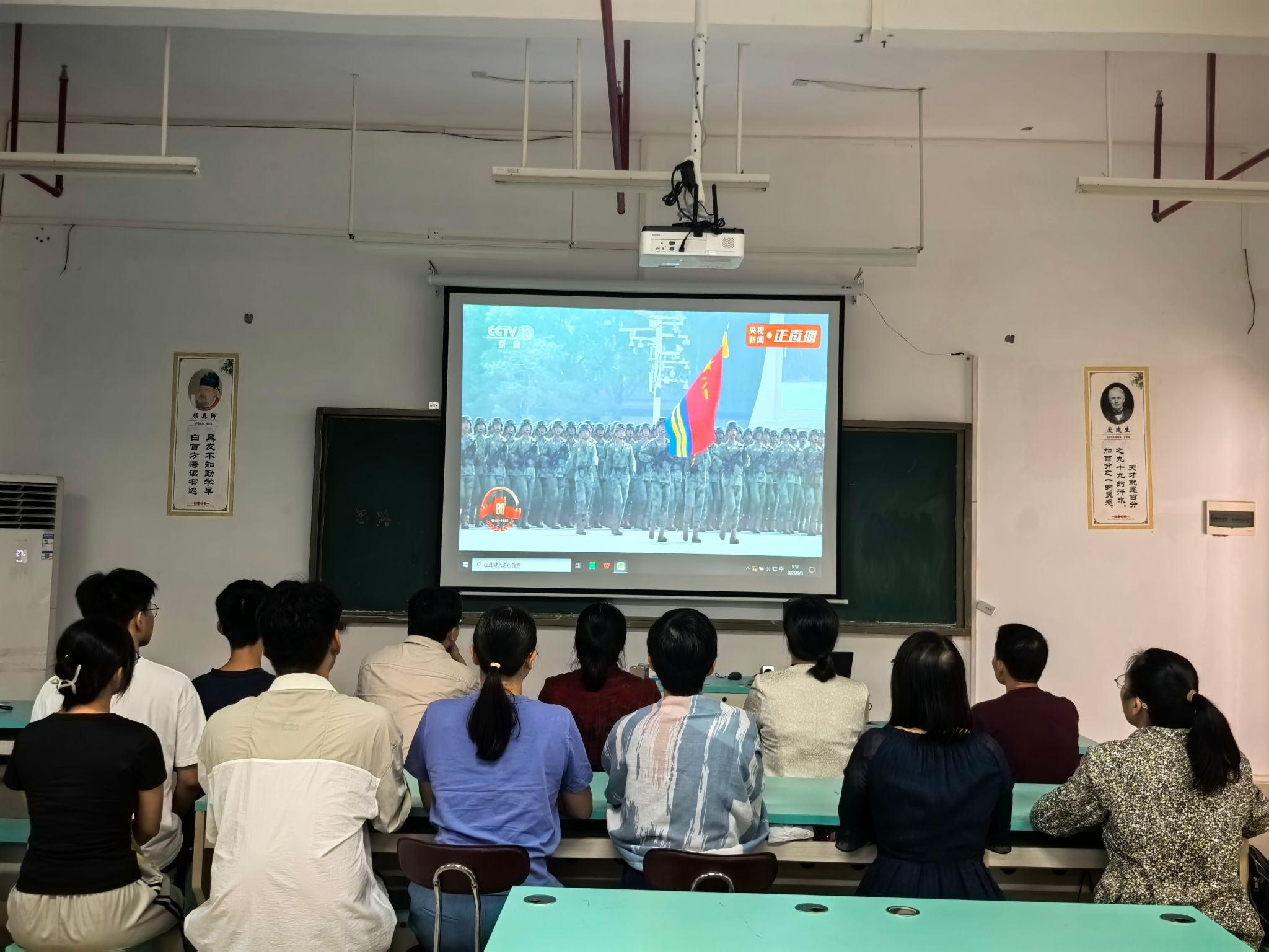 金秋九月,丹桂飘香。2025年9月3日上午,为隆重纪念中国人民抗日战争暨世界反法西斯战争胜利80周年,我院在五合校区理综楼603室组织集中观看纪念大会大阅兵仪式活动。学院党委书记许建、副书记张建梅、副院长罗永仕等学院领导,以及十余名教职工代表共同参加,与全国人民一同见证这一铭刻历史、振奋人心的庄严时刻。通过一场震撼心灵的视听盛宴,将抗战精神融入立德树人的时代使命,筑牢育人初心。