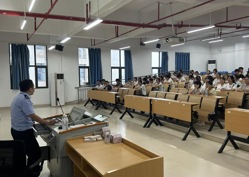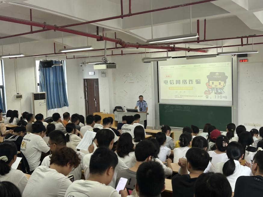 为提升新生防范电信网络诈骗的意识和能力,我院分别于9月9日、9月12日在五合校区文综楼801教室、文综301教室举办了“防诈于心,护航青春”反诈宣传培训会。本次培训邀请南宁市公安局仙葫派出所民警赖世祥警官进行主讲,培训主要面向2025级全体新生,通过民警专业讲解和真实案例教学,切实增强学生识诈、防诈能力。