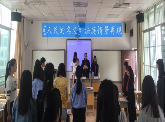 进入5月下旬以来,反腐大剧《人民的名义》首播收宫不久,政法学院2014级历史学专业本科班举办“《人民的名义》法庭情景剧”体验式教学活动。教学案例由覃淮宇副教授和玉林市人民检察院未成年人检察科科长李绩荣撰稿,教学活动取得圆满成功。随后,卢明威、秦晓辉、卢臻等教师结合所授课程,积极引入庭审体验式教学。在课堂上,法学、非法学专业本科学生通过扮演法官、书记员、法警、原被告、律师模拟庭审过程,形象生动地“演示”了法庭诉讼的真实场景,通过庭审体验式教学,避免了枯燥乏味的一般性理论说教的弊端, 融趣味性、知识性与实践性于一体,为学生营造一个更为舒适、科学的学习环境,真正体现了“知行合一”,课堂教学质量和教学满意度均显著提升。