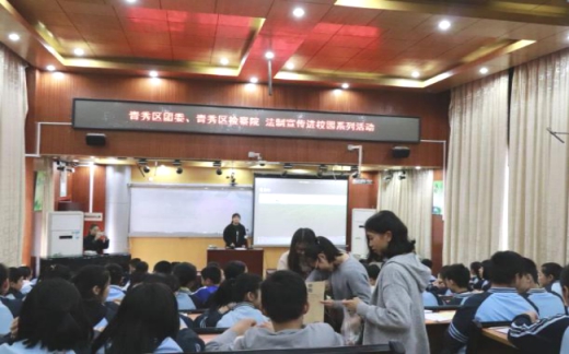 本次普法活动由2017级法律硕士蔡超、董文路带队,由18级法学专业本科学生卢珊主讲,团队其他成员配合完成。活动主要以讲座形式把“预防校园欺凌”的相关法律知识在该校中学生中进行普及,并通过有奖问答、问卷调查等活动辅助实施,活动取得圆满成功。作为系列普法活动的开端,此次活动对提高我校法学专业学生法律知识运用技能和教学技能,推进青秀区普法志愿服务常态化进程,更好地服务中小学校园法治教育具有重要意义。