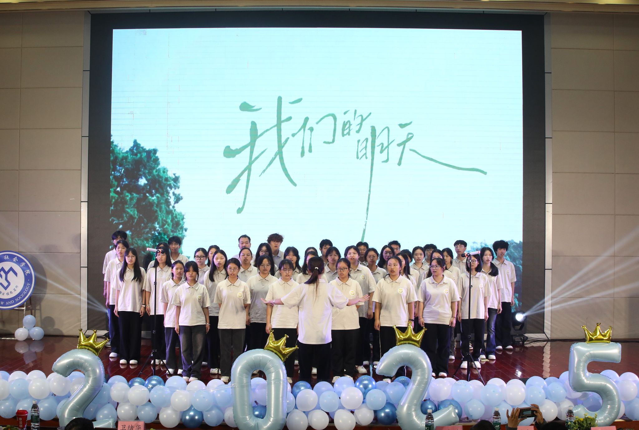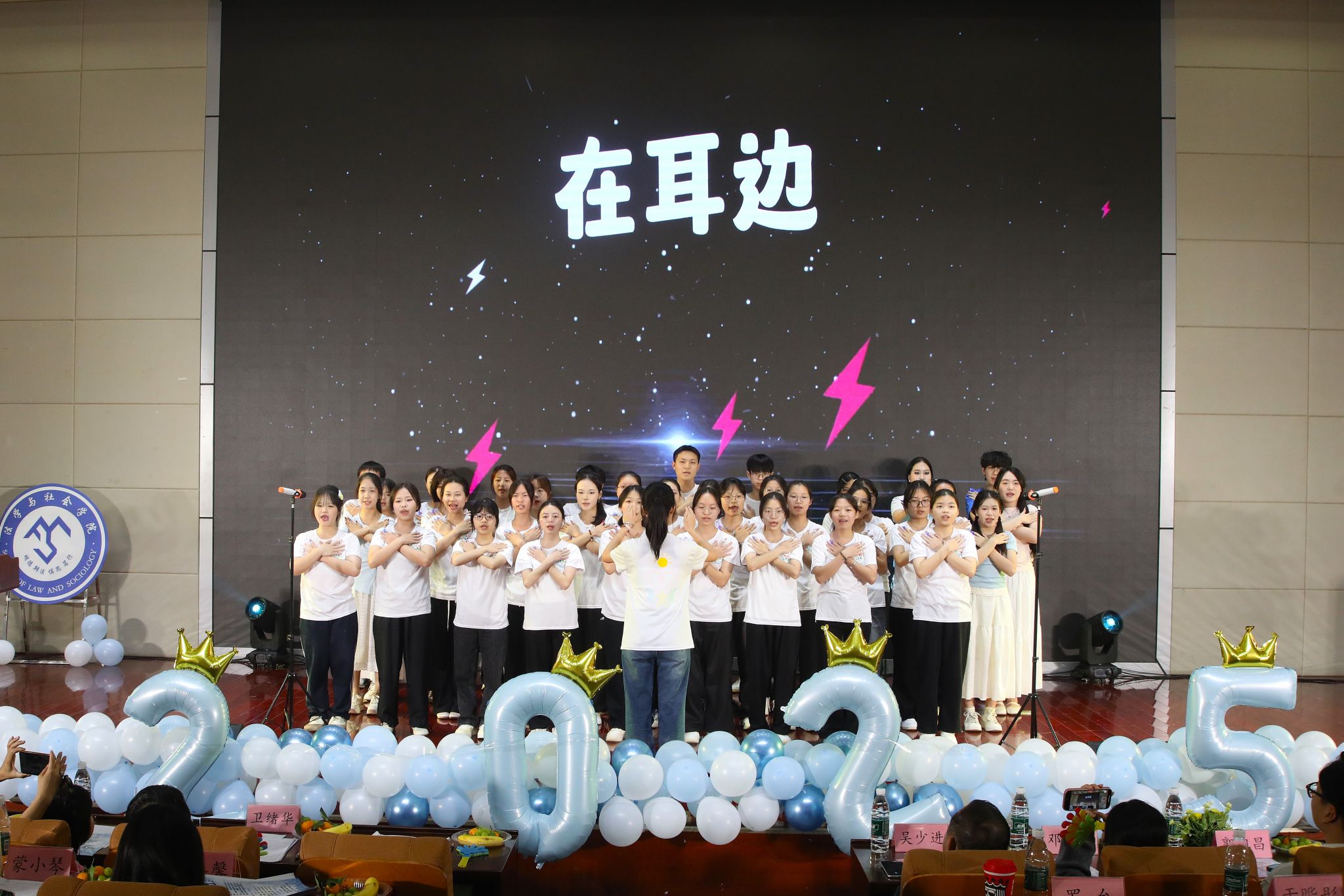 比赛正式启幕,各环节亮点纷呈、高潮迭起。在班级展示环节,《我们的明天》《一起向未来》等合唱曲目深情演绎,用嘹亮歌声凝聚班集体向心力;个人才艺展示环节更是百花齐放,歌曲演唱、舞蹈表演、乐器独奏、相声小段等多元形式轮番登场,尽显学子风采。特邀节目环节同样精彩绝伦,研究生代表、青春舞团及25级助班、下班党员相继登台表演,用精彩的表演展现出学院艺术教育的深厚底蕴与传承成果。展演尾声,陈西茜老师上台作总结发言。她对本次比赛的圆满落幕表示祝贺,并向所有参演选手、工作人员及到场观众致以感谢,肯定了活动中展现的学子风采与集体凝聚力。