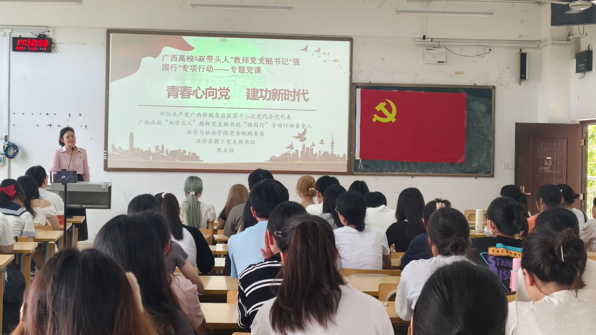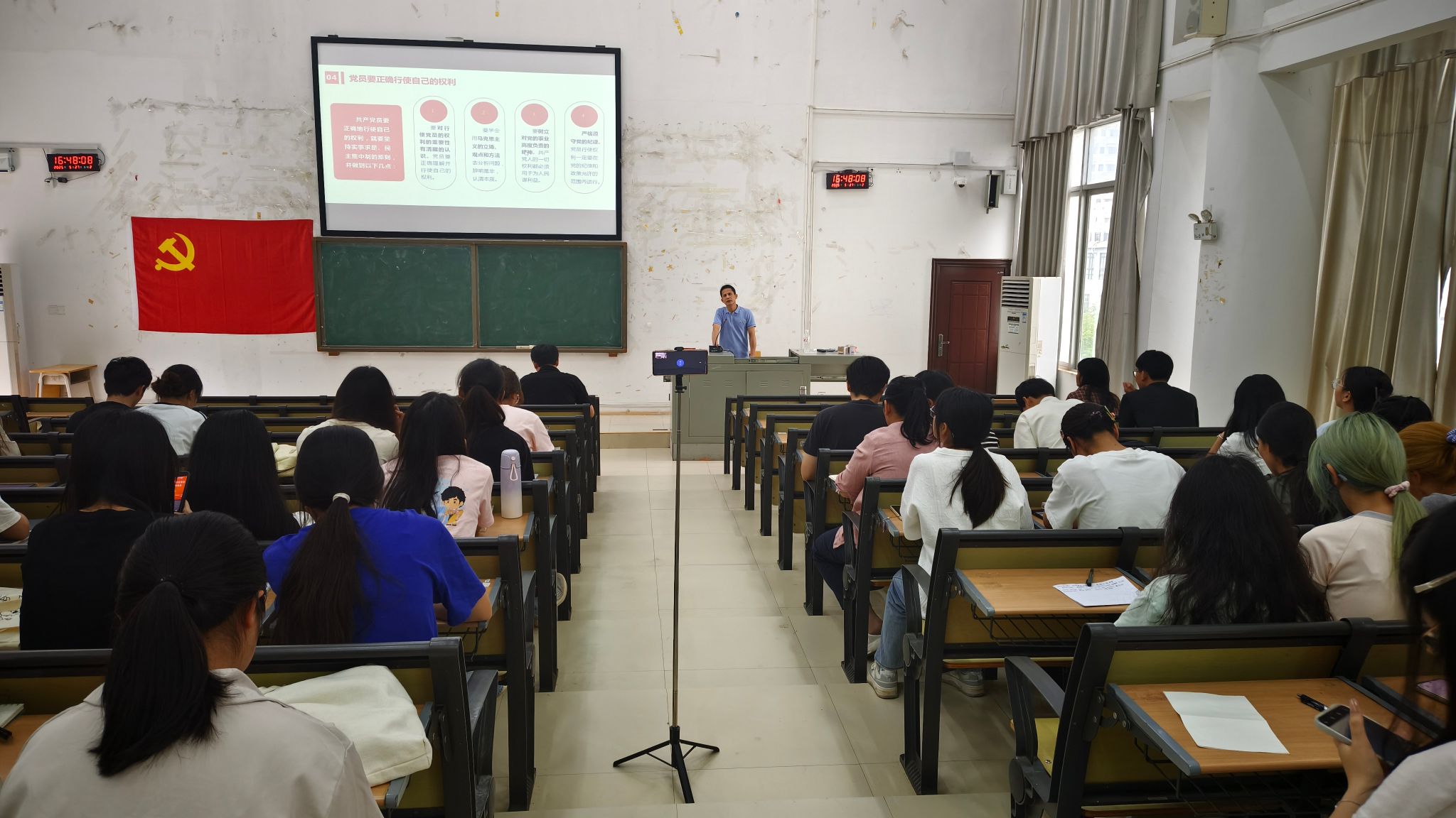 在入党积极分子培训环节,陈文琼同志以“青春心向党,建功新时代”为题,激励青年学子坚定理想信念,勇担时代使命;尹贻荣同志详细解读“入党有要求,标准需严守”的大学生入党须知及注意事项,明确党员发展规范要求;罗永仕同志系统讲授“共产党员的权利和义务”,增强学员对党员身份的深刻认识。